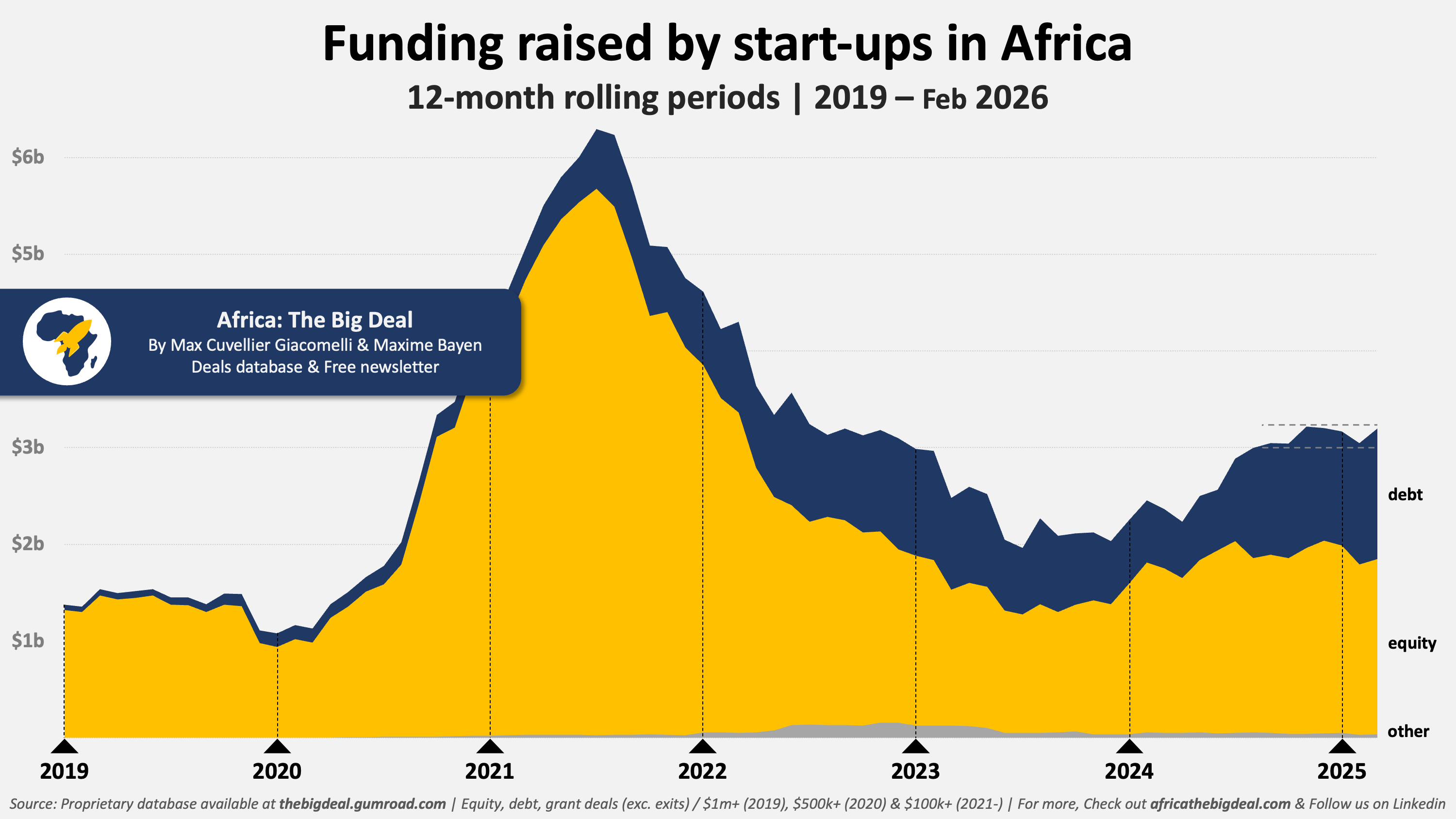 If you need access to the underlying data ready to be sliced by country, sector, stage, or investor, thatās what our Africa: The Big Deal database is for. You can access it here at a discount. Or if youāre a start-up and feeling lucky, apply to join our āData for Foundersā initiative - in partnership with FMO Ventures - for a chance to get free access to the database for the next two years (and more). Have a good day! Max