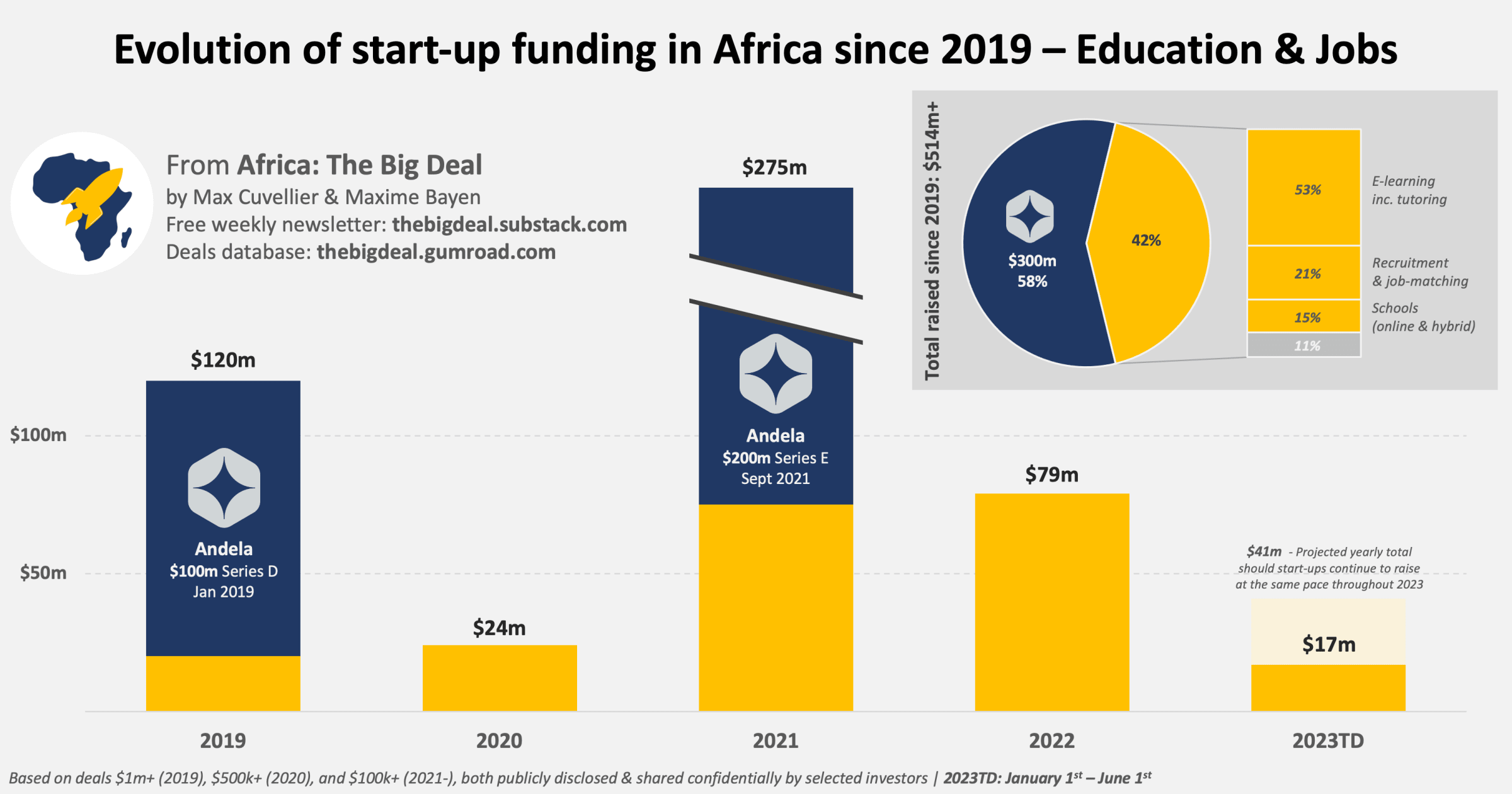 A breakdown of the $500m+ invested in Edtech and Jobtech start-ups in Africa since 2019