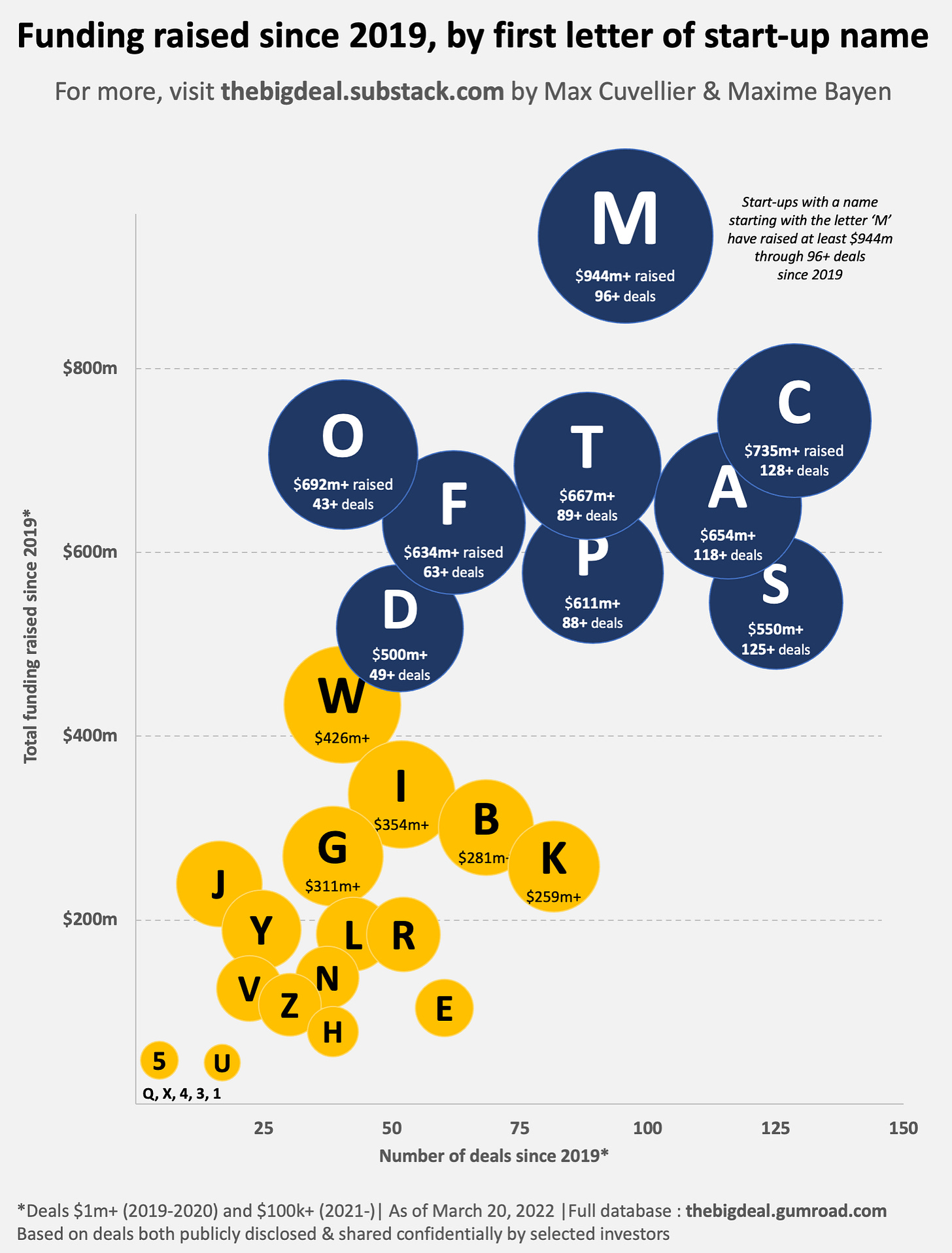 Now, I trust you will take all of this with a pinch of salt as it will take more than being named ‘Mart’ or ‘Matr’ for a start-up to shoot to unicorn status. That said, it’s very likely you will struggle if you’re called ‘Qqzxjujxzqqu666ujxzqu’, but you might defy the odds, who knows. And by the way, if you’ve ever done some quirky analysis on our database - now including more than $9bn worth of deals -, I’d love to hear about it 🙃